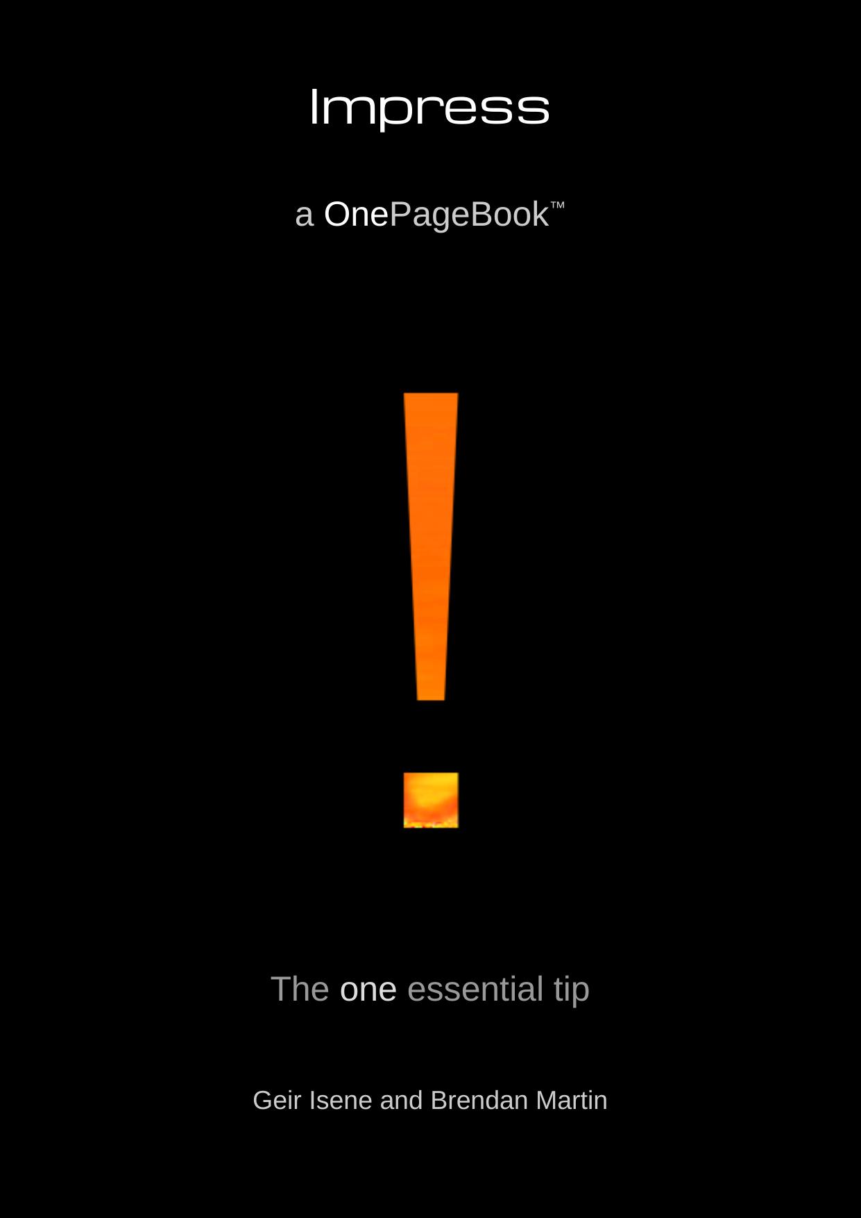 I have written several normal-sized books. And I’ve read lots of books that I thought should have been compressed down to one page. The same with my collegue/best friend Brendan Martin, which is why we decided to start publishing OnePageBooks (1PBs) on key subjects. Presented here in the order of general interest: